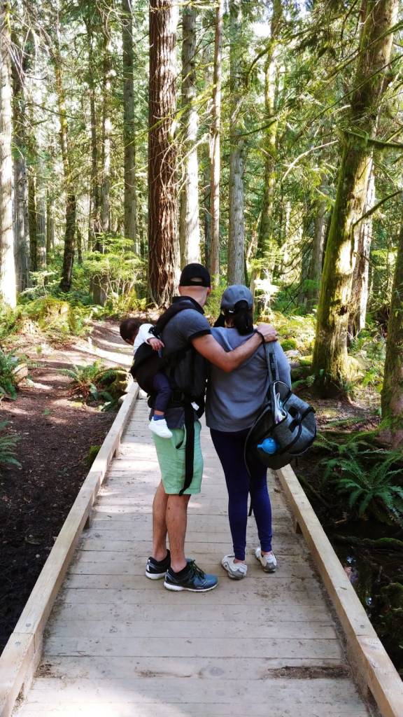 It was the first time that we were outdoors with our son for such a long period of time, burning some calories and enjoying the sunny skies and clear air. It felt real good, even though we were/are grossly out of shape. We ended up doing a 3.4 mile hike partly through forests and partly through the cityscape. It’s amazing how in PNW it is very easy to go from the concrete jungles to the natural forests with a couple mile drive!
